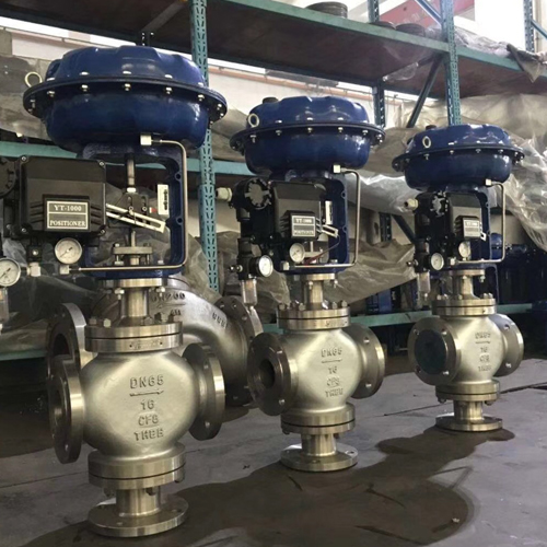 ZJHQ/ZJHX氣動薄膜三通調節閥是由氣動薄膜多彈簧執行機構和三通合流,分流調節閥組成。氣動薄膜執行器具有高度低、重量輕、安裝維修簡便等優點。配用電氣閥門定位或氣動閥門定位器,可實現對工藝管路流體介質的自動調節控制,廣泛應用于精確控氣體、液體、蒸汽等介質的工藝參數如壓力、流量、溫度、液位等參數保持在給定值。閥芯結構采用圓筒薄壁窗口,并采用閥芯側面導向。閥體為三通結構,即一進兩出(氣動三通分流調節閥),兩進一出(氣動三通分流調節閥), 從而達到流體混合升溫或降溫,或流體不等量分流,滿足不同工況的使用要求。具有結構緊湊、量輕、動作靈敏、壓降損失小、閥容大、流量特性精確和維修方便等優點。應用于比例調節或旁路調節,尤其適用于石油工業熱交換器的流體溫度控制系統的調節,一臺三通閥可代替兩臺單座閥或雙座閥使用,占據空間體積小,節省安裝管道及費用。